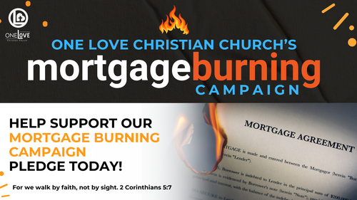 - Money orders/Cashier’s checks (Make checks payable: One Love Christian Church Note: Mortgage Burning Campaign)